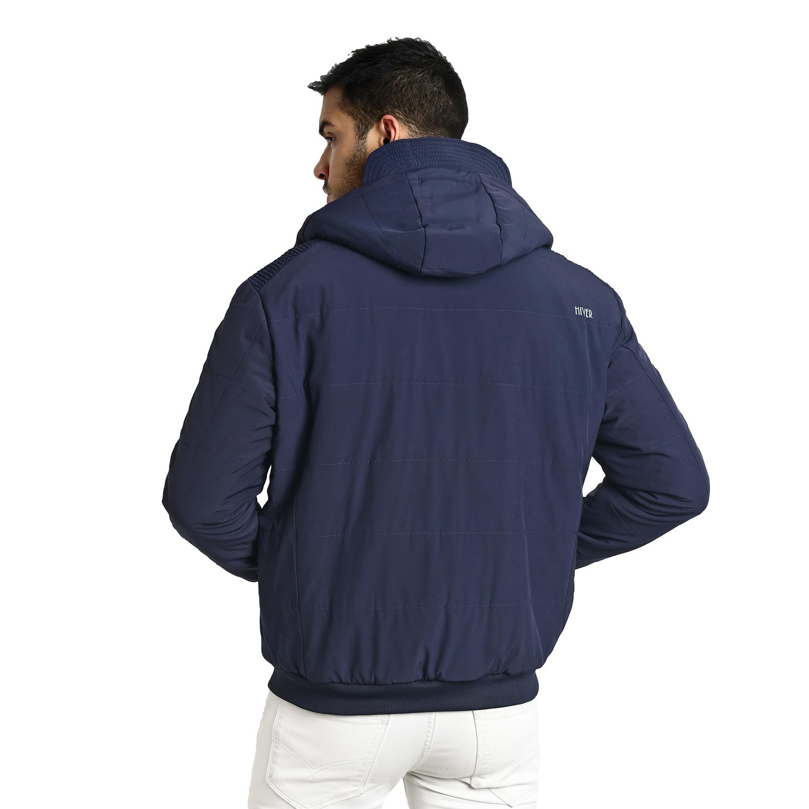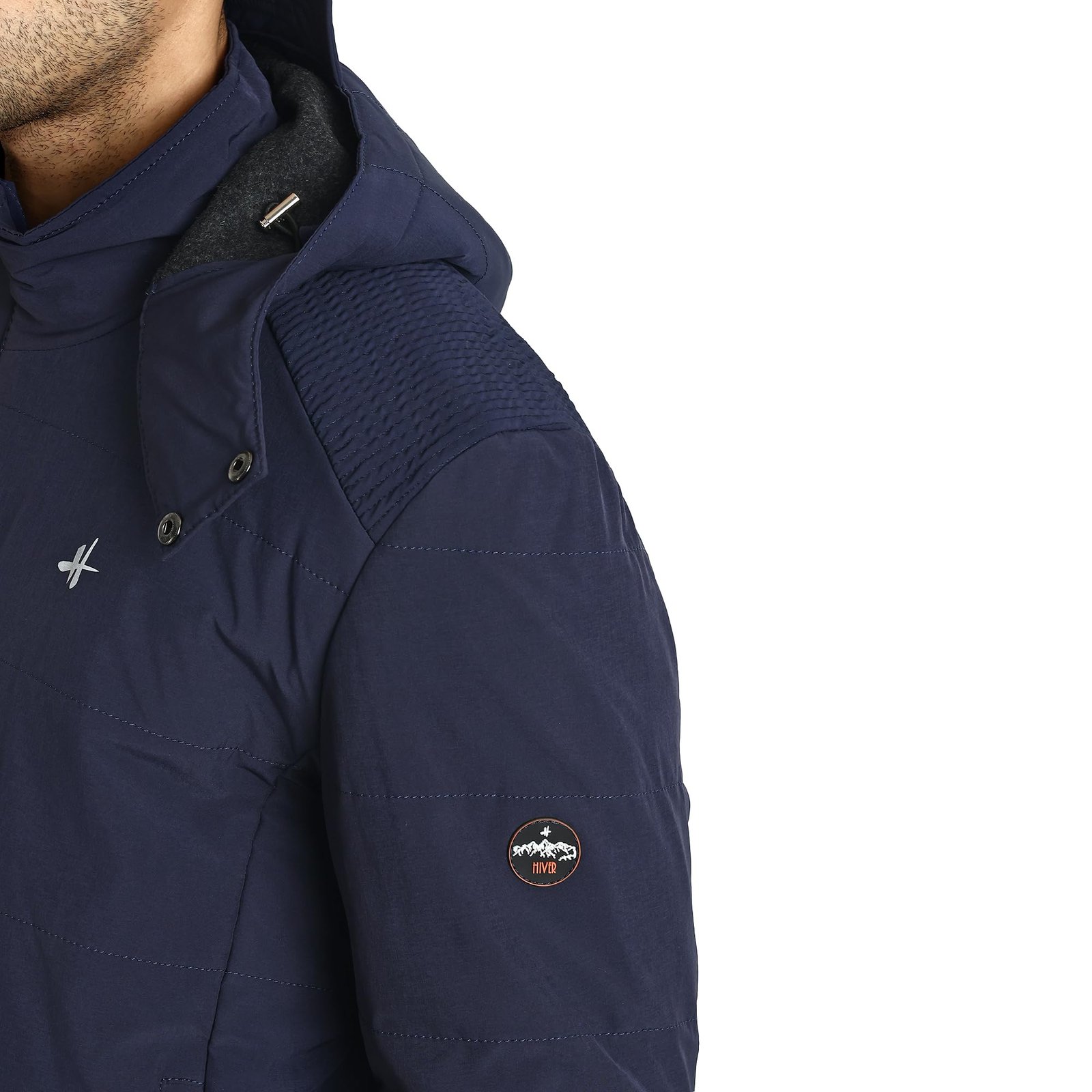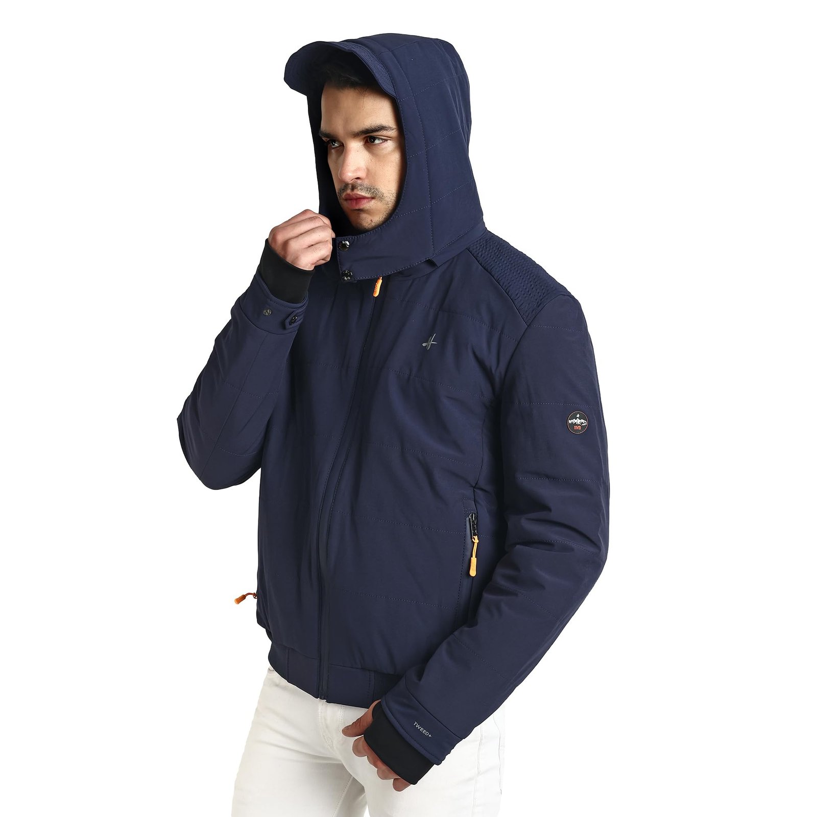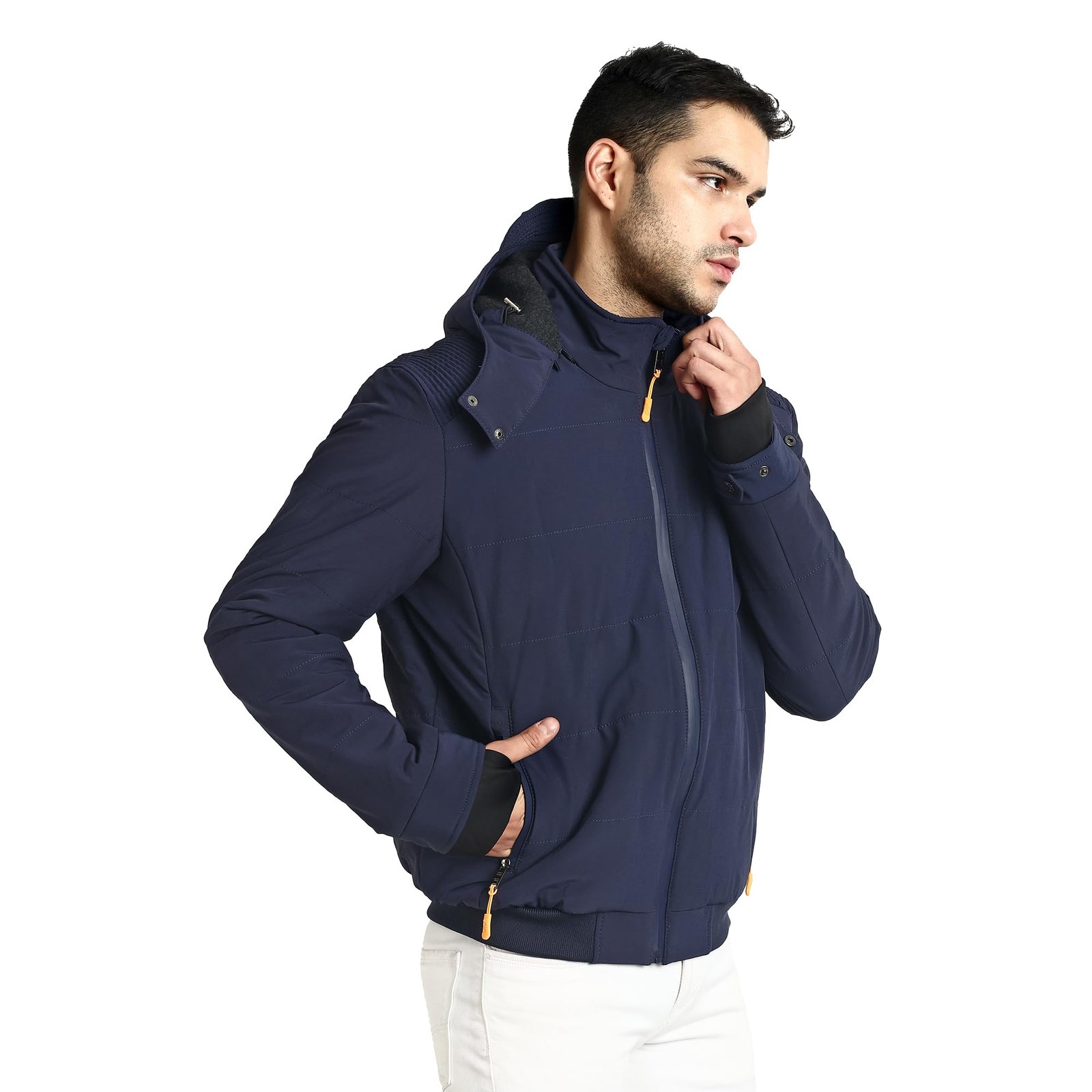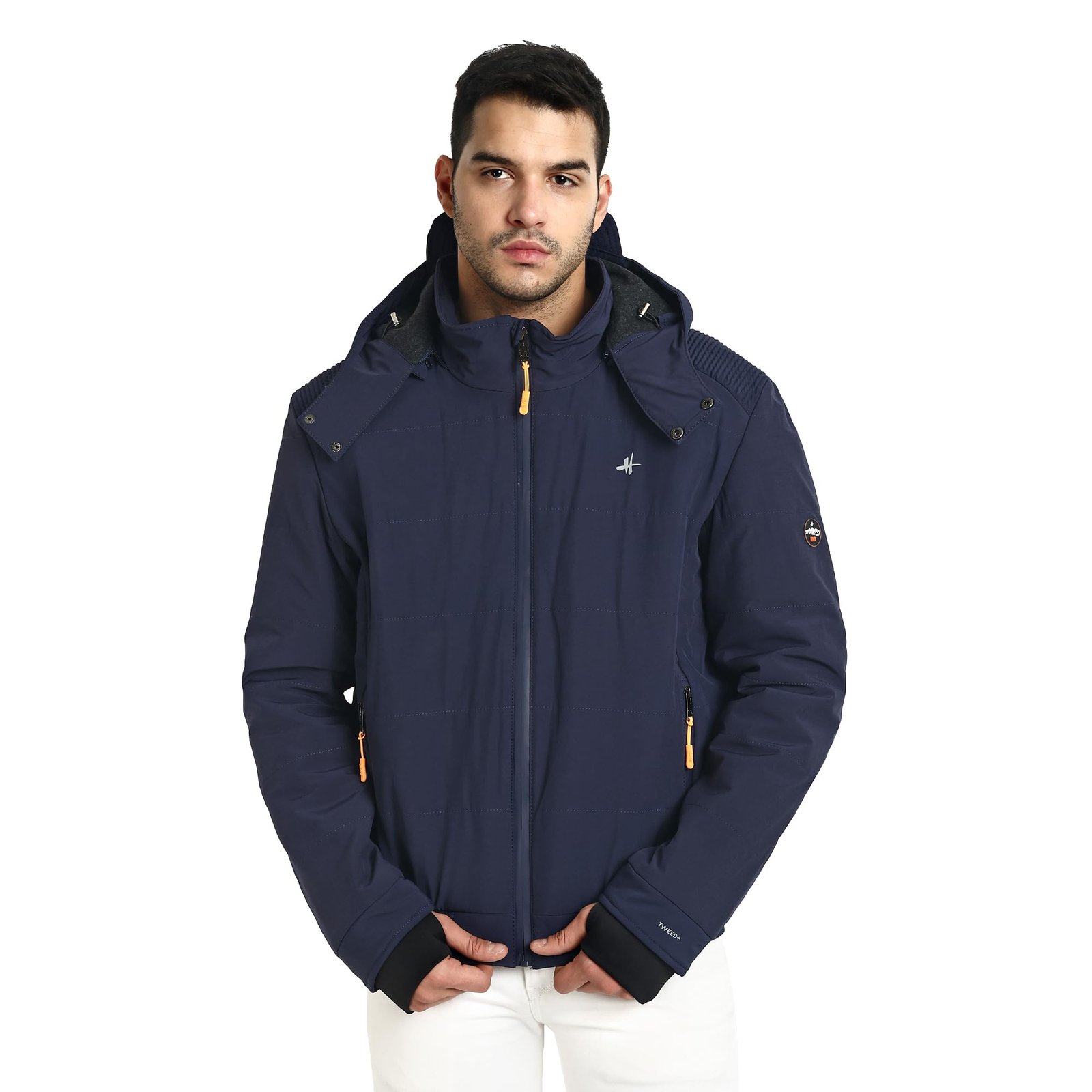 HIVER Men’s Nylon Standard Length Jacket Water Proof Full-Sleeved Winter Jacket with Hood For Minus Degree (Royal Blue, M)