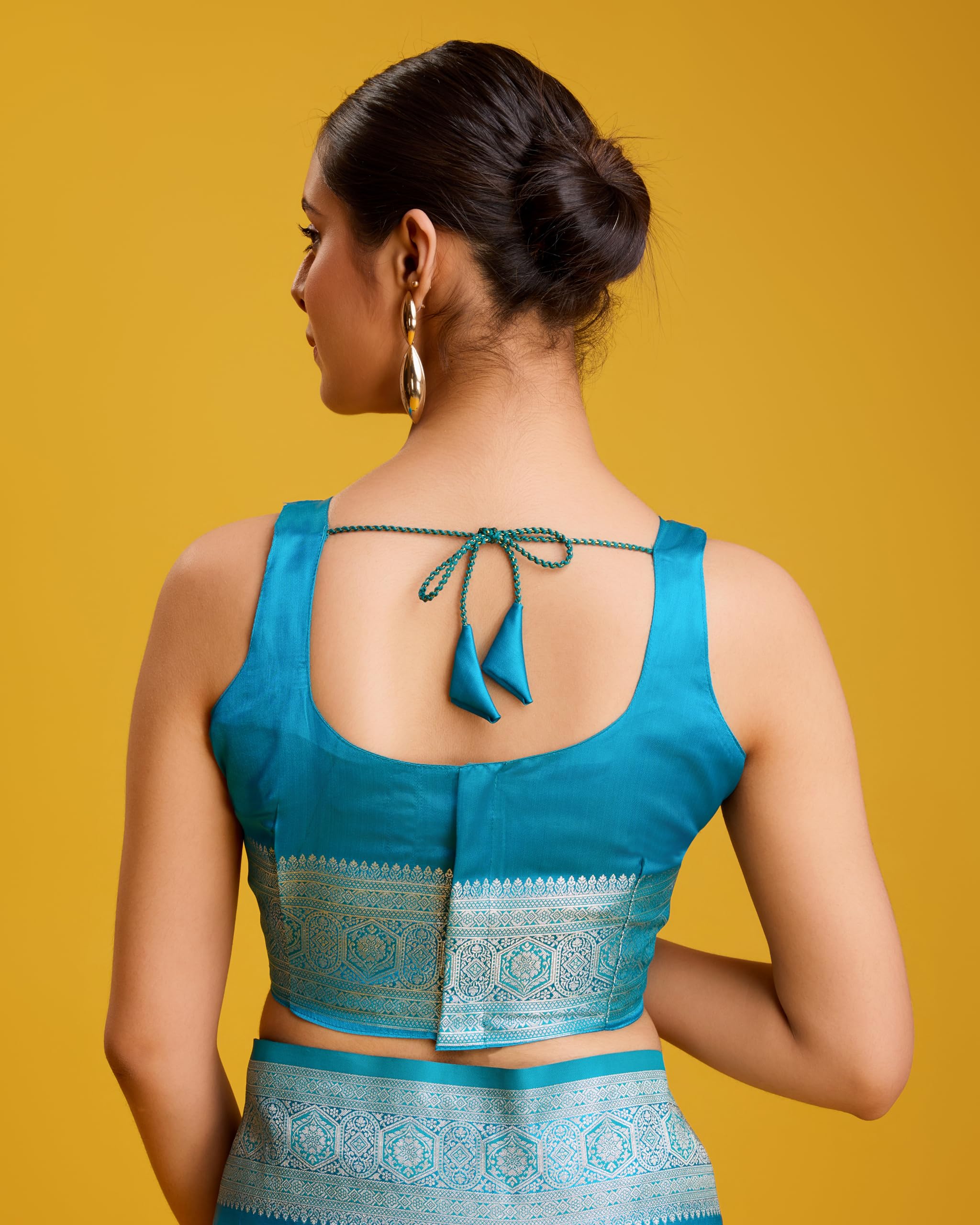 • Styling Tip: Style your Banarasi satin soft silk saree with a designer blouse — think deep backs, elbow sleeves, or even a modern sleeveless cut to balance its richness.