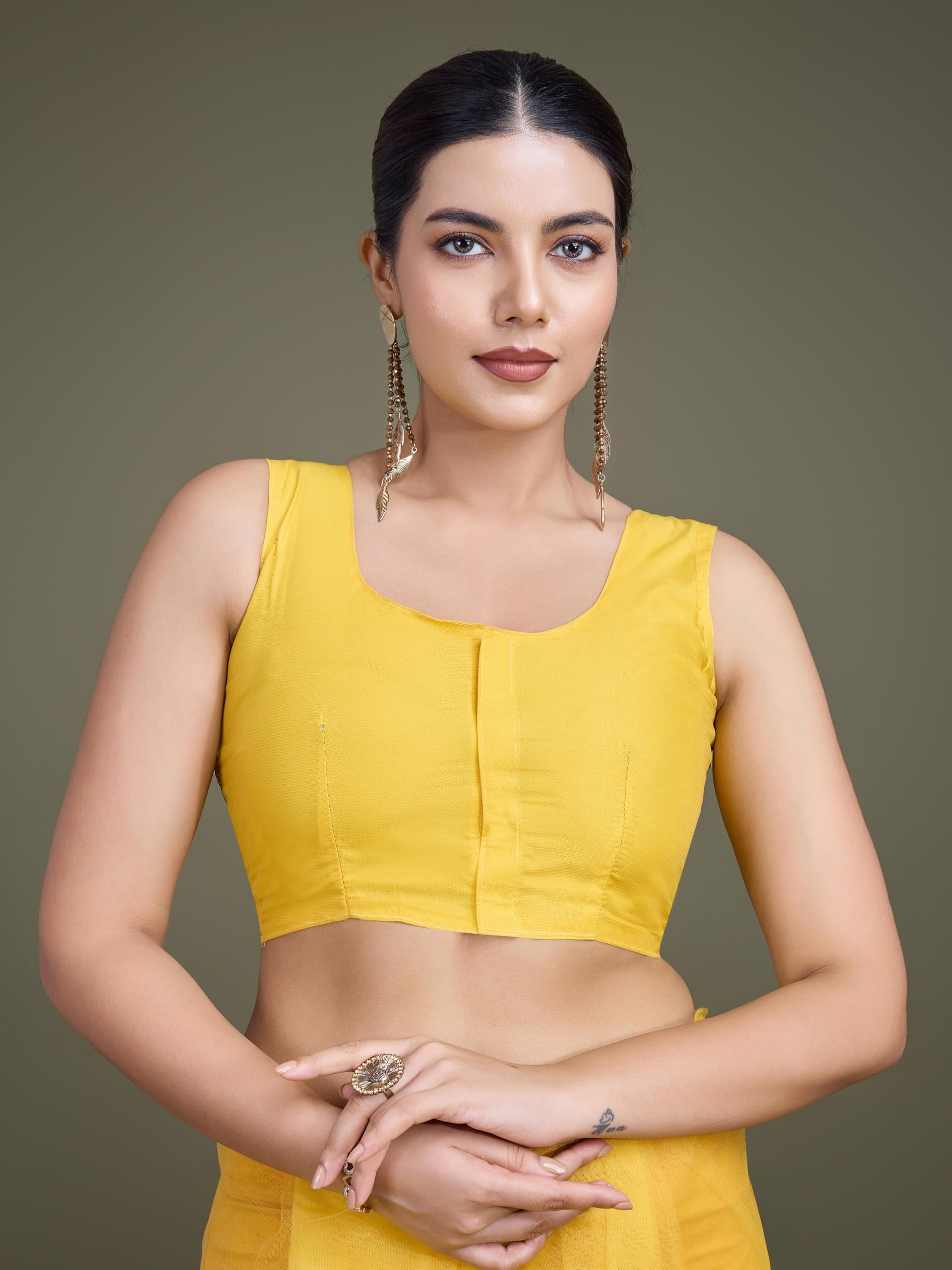 • Product Highlights : Fabric: Soft Net (Saree & Blouse) || Work: Sequence (Saree), Sequence (Blouse) || Colour: Saree –Yellow | Blouse – Yellow || This saree captures a glamorous evening vibe perfect.