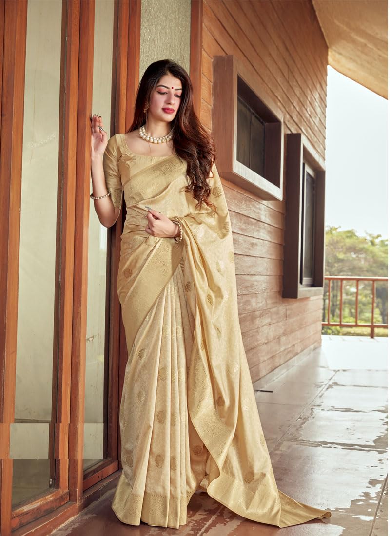 SGF11 Women’s Kanjivaram Pure Soft Silk Saree With Unstitched Blouse Piece (Cream)