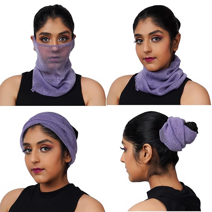 Women Scarf Anti Pollution Full face Scarf Mask Made with Cold Net Rayon Fabric,UV Sun Rays Protection mask for Women, Dust Mask Comfortable summer friendly Scarf_Free Size(Pack Of 01,Purple)